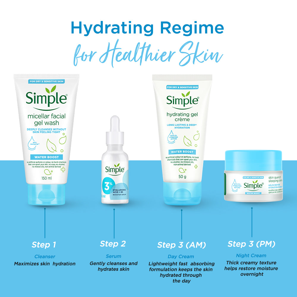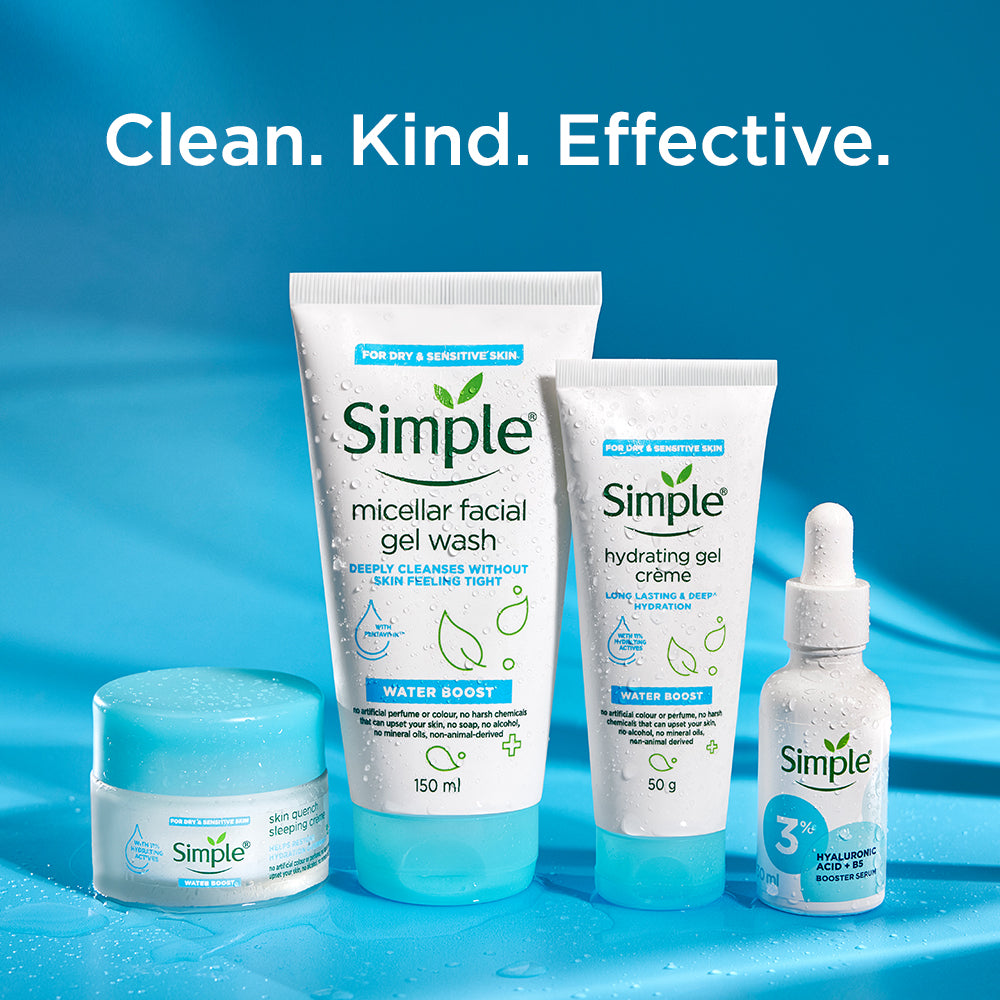 Experience the ultimate refreshment for your skin with Simple’s 100% soap-free, Water Boost Micellar Facial Gel Wash. This gentle yet effective gel wash is specifically formulated to cleanse your skin without over-drying.