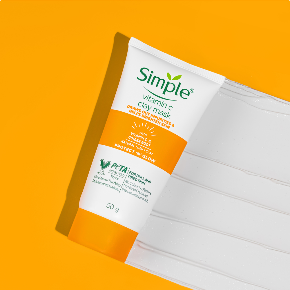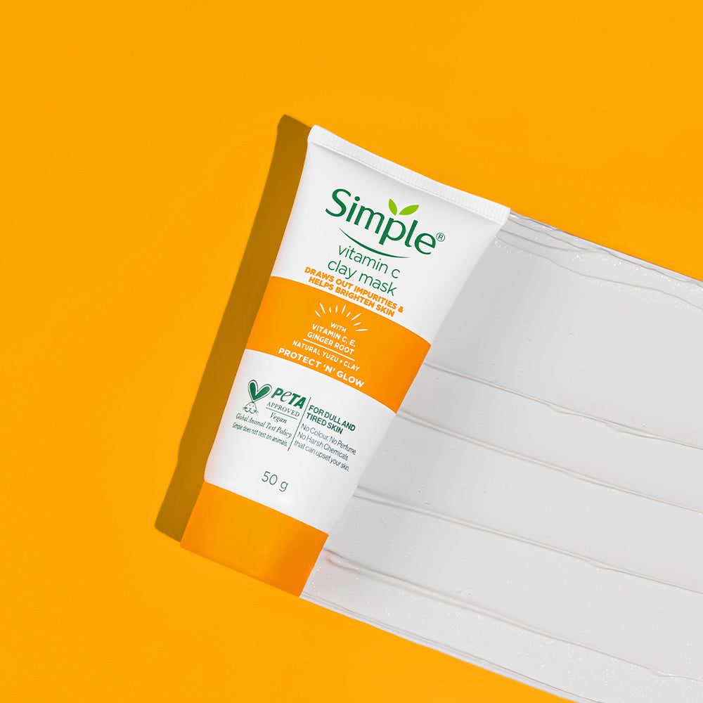 Enhance your skin’s natural radiance with the Simple Protect N Glow Vitamin C Brighten Clay Mask. Infused with VitaminC and 100% Bentonite Clay, this advanced clay mask works like a magnet to remove dust, impurities, and excess oil.
