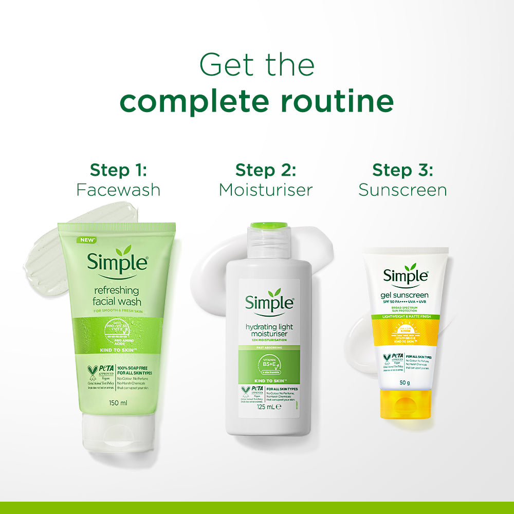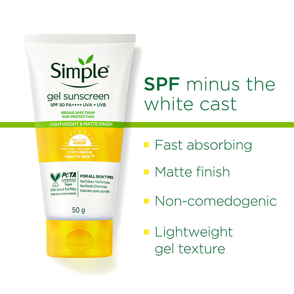Get ready to soak up the sun while keeping your skin happy and healthy with Simple Kind to Skin Gel Sunscreen SPF 50 PA++++! It protects against harmful UV rays to keep your skin glowing and guarded all day. Plus, it's packed with the right ingredients, so it doesn't just protect—it promotes softer, healthier skin.